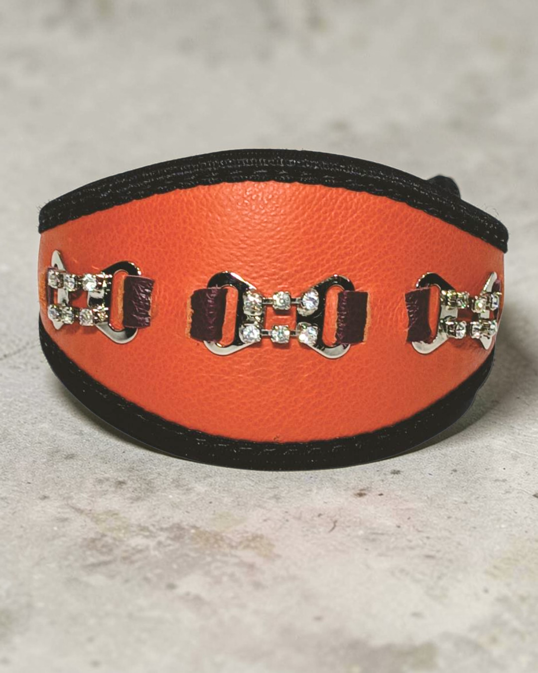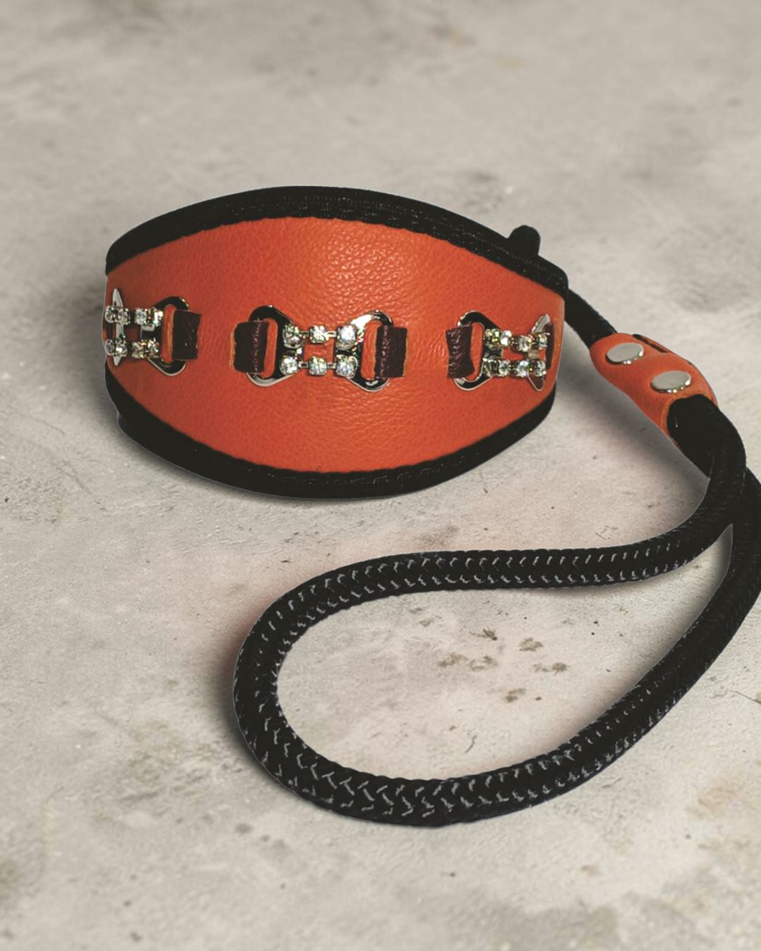 Confeccionada em couro legítimo, a Coleira Galgo combina durabilidade com acabamento refinado. Disponível em versões com tecido liso ou glitter, é perfeita para tutores que valorizam qualidade e personalidade.
