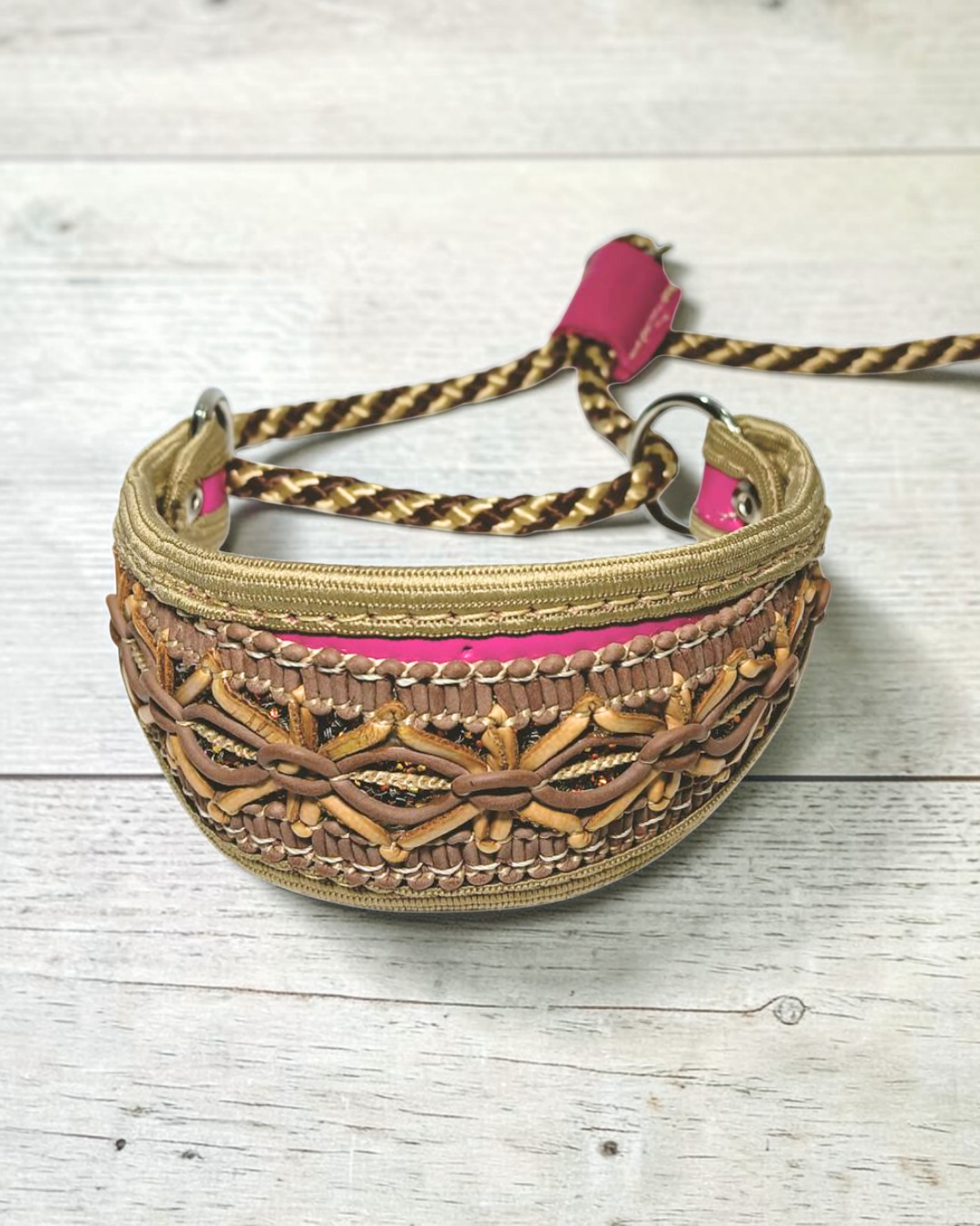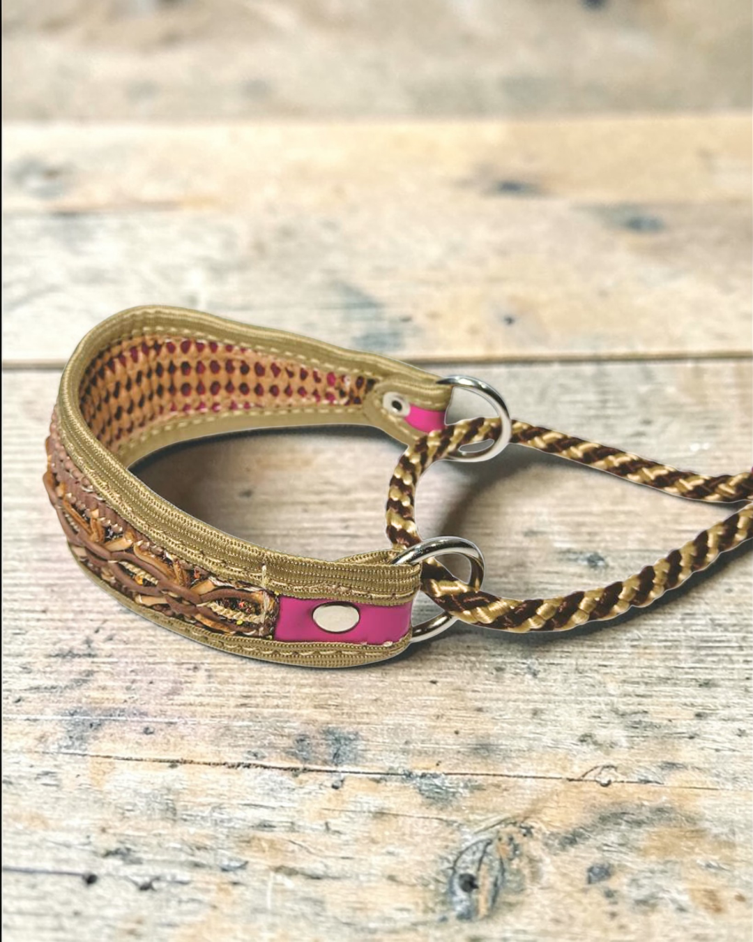 Confeccionada em couro legítimo, a Coleira Galgo combina durabilidade com acabamento refinado. Disponível em versões com tecido liso ou glitter, é perfeita para tutores que valorizam qualidade e personalidade.