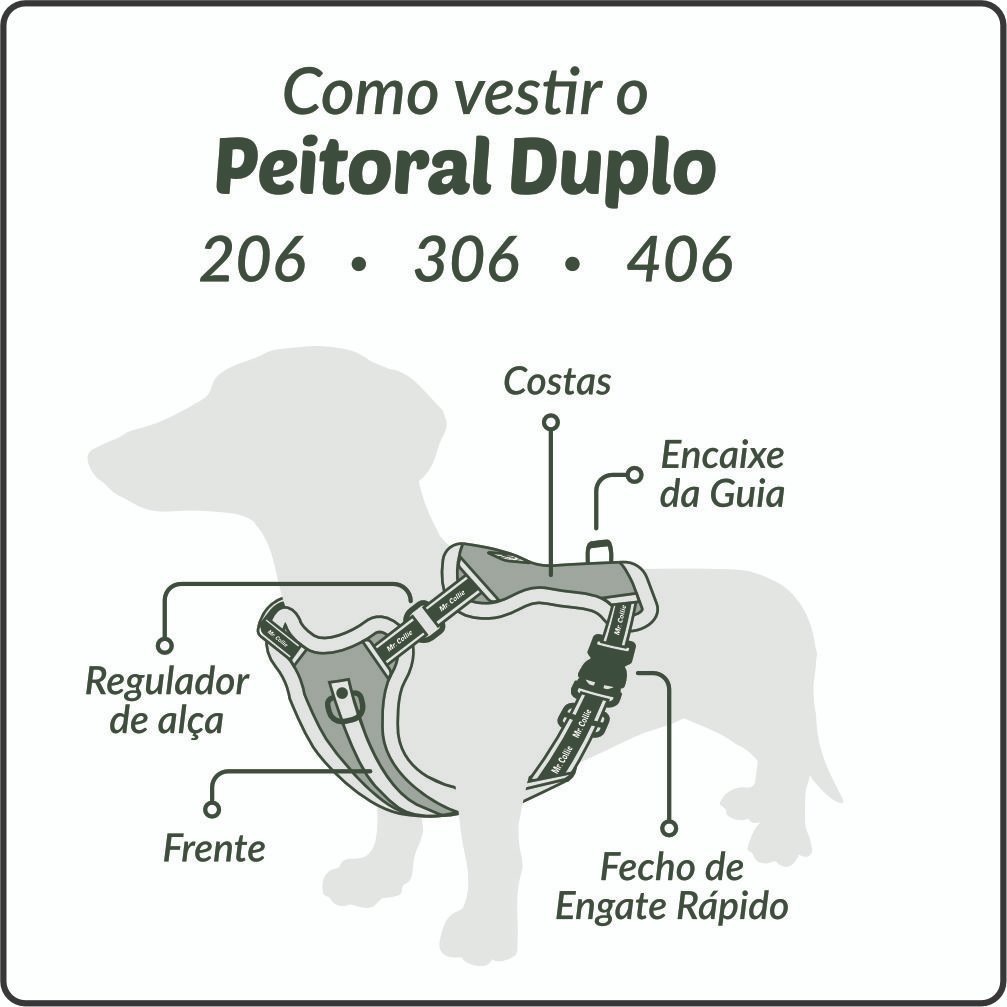 O Peitoral da Mr. Collie une estilo e funcionalidade para o seu pet, com uma personalização exclusiva, tornado uma peça única.
